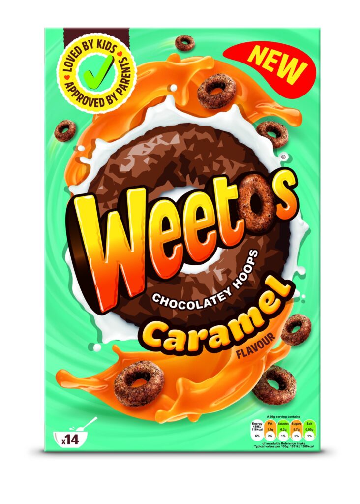 Weetos, the tasty family brand from the Weetabix Food Company, is back with an exciting new offering this spring: Weetos Chocolatey Hoops Caramel flavour. Caramel’s proven association with indulgence and nostalgia[1] means this NPD looks set to fly off the shelves! The latest delicious addition to the Weetos portfolio will allow shoppers to start their day with a flavour fix that they can feel good about, with strong taste credentials and no red traffic lights.